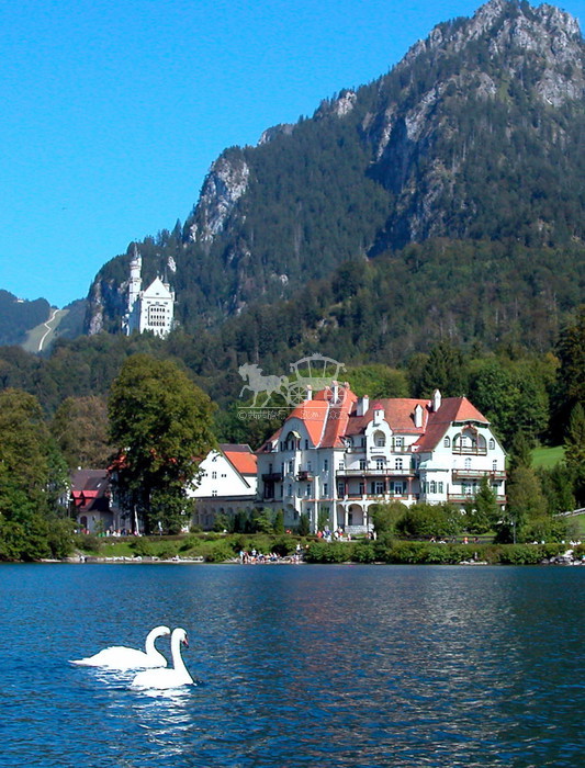 【新天鹅堡】童话般的新天鹅堡被郁郁葱葱的森林、宝石般的湖泊以及巍峨的阿尔卑斯山围绕着。路德维希二世浪漫神秘的一身更为新天鹅堡增添了无限魅力。